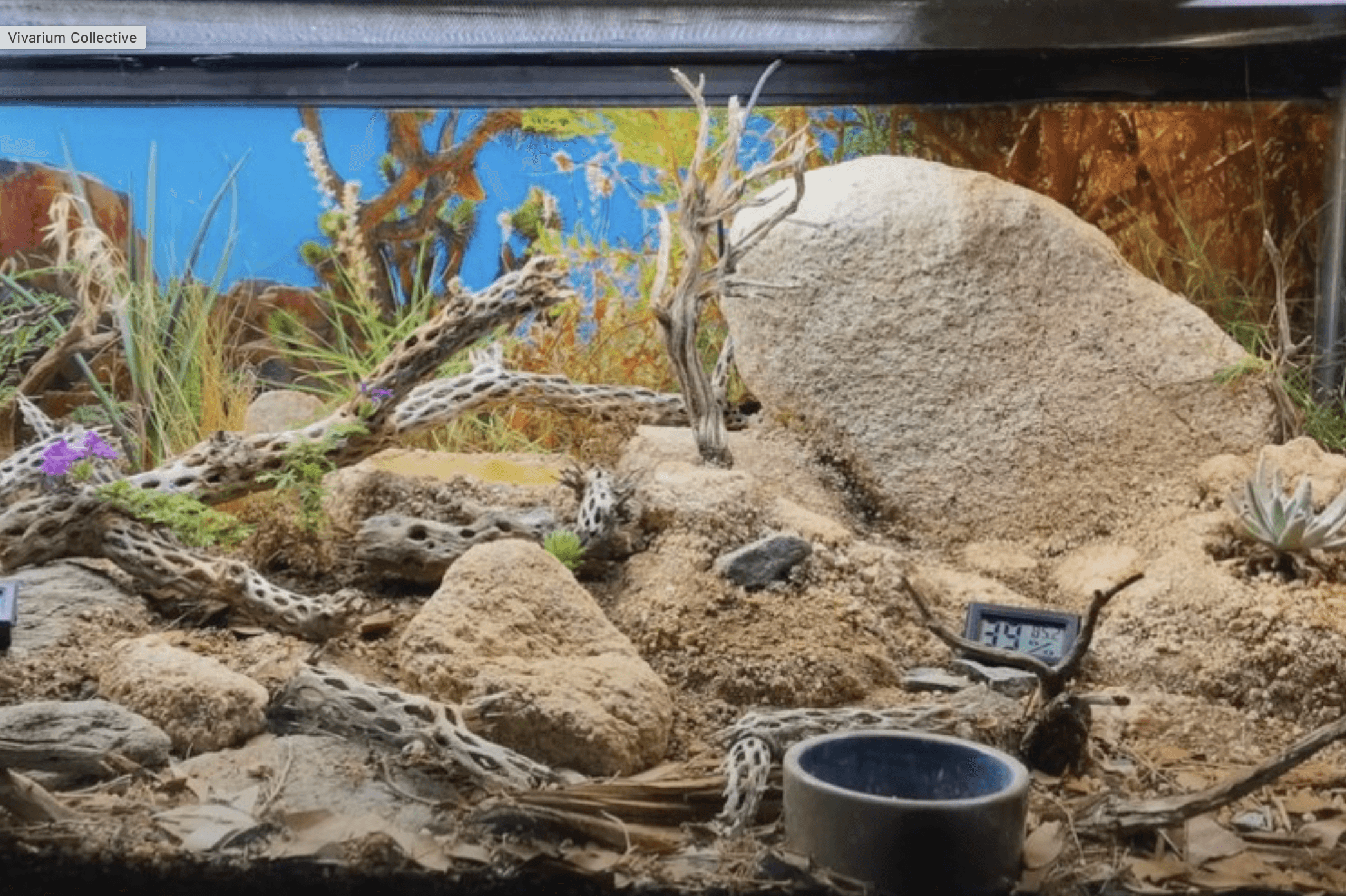 Despite the arid nature of the environment, water remains a crucial element. Ensure hydration for both plants and inhabitants through water dishes, humid hides, and misting.Choose an appropriate cleanup crew