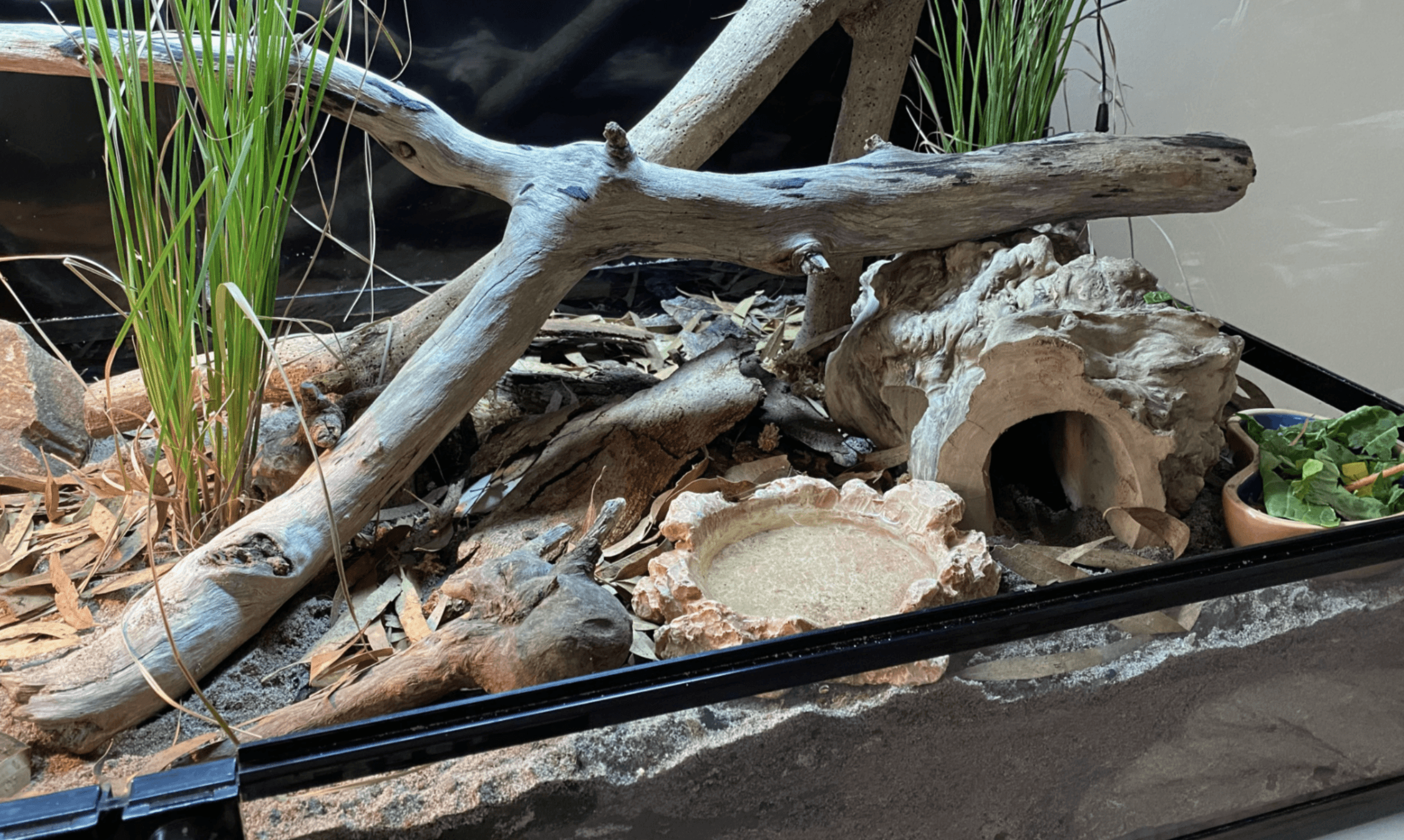 Keep an eye on the plants and substrate to make sure the enclosure isn’t too dry for too long. Ensure the water bowl is consistently cleaned and topped up.Occasional misting